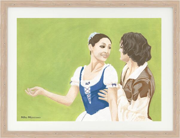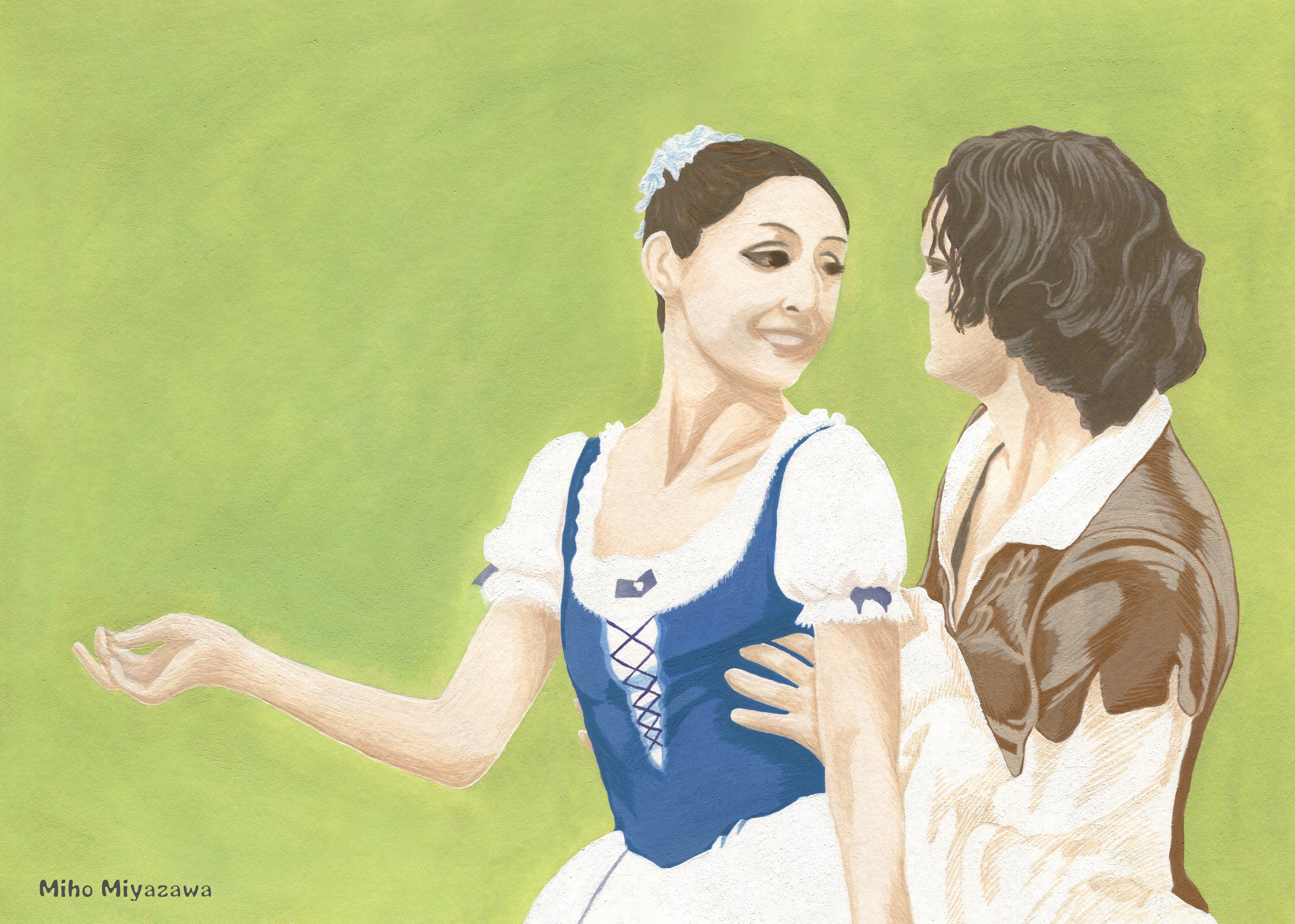 草刈民代さんをモデルに、ジゼルの第1幕をイラストにしました。