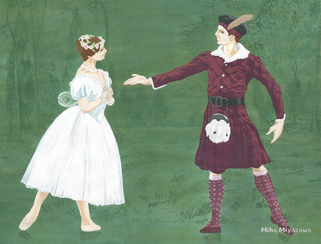 バレエ「ラ・シルフィード」の一場面を描いた絵を、ポストカードにしました。